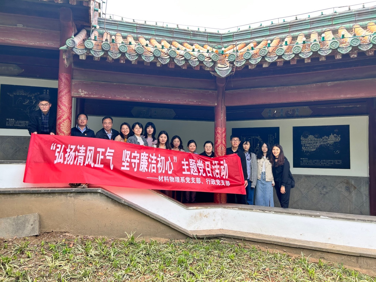 为深入开展学习贯彻习近平新时代中国特色社会主义思想主题教育活动,全面学习贯彻党的二十大精神,加强反腐倡廉教育和廉洁文化建设, 4月21日上午,91吃瓜 材料物理党支部、行政党支部联合开展“弘扬清风正气、坚守廉洁初心”主题党日活动,组织支部党员前往阅江楼参观百米长廊连环画及明史金陵碑廊。联系材料物理党支部的党委委员、学院党委副书记吕蔷蔷参与此次活动。
