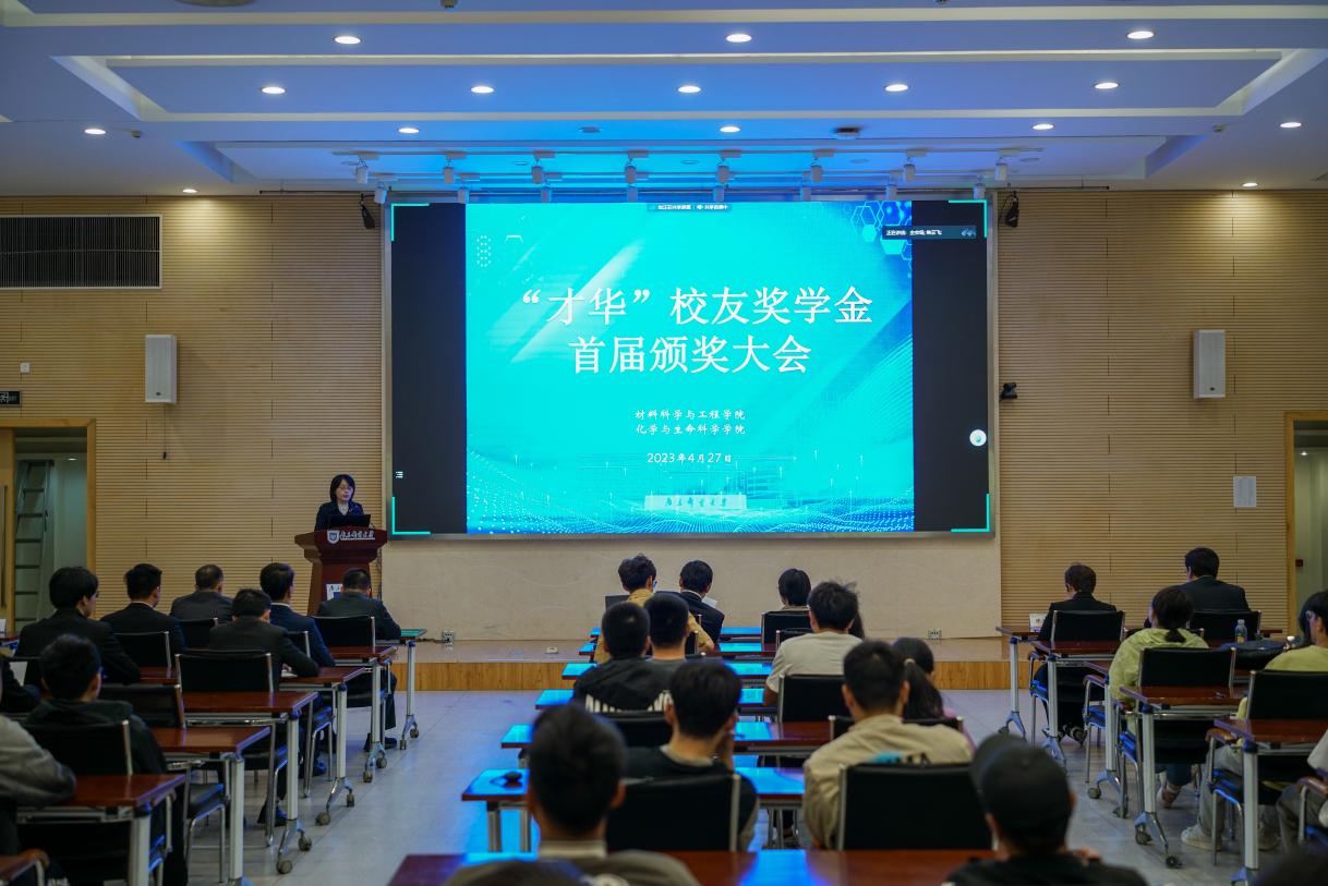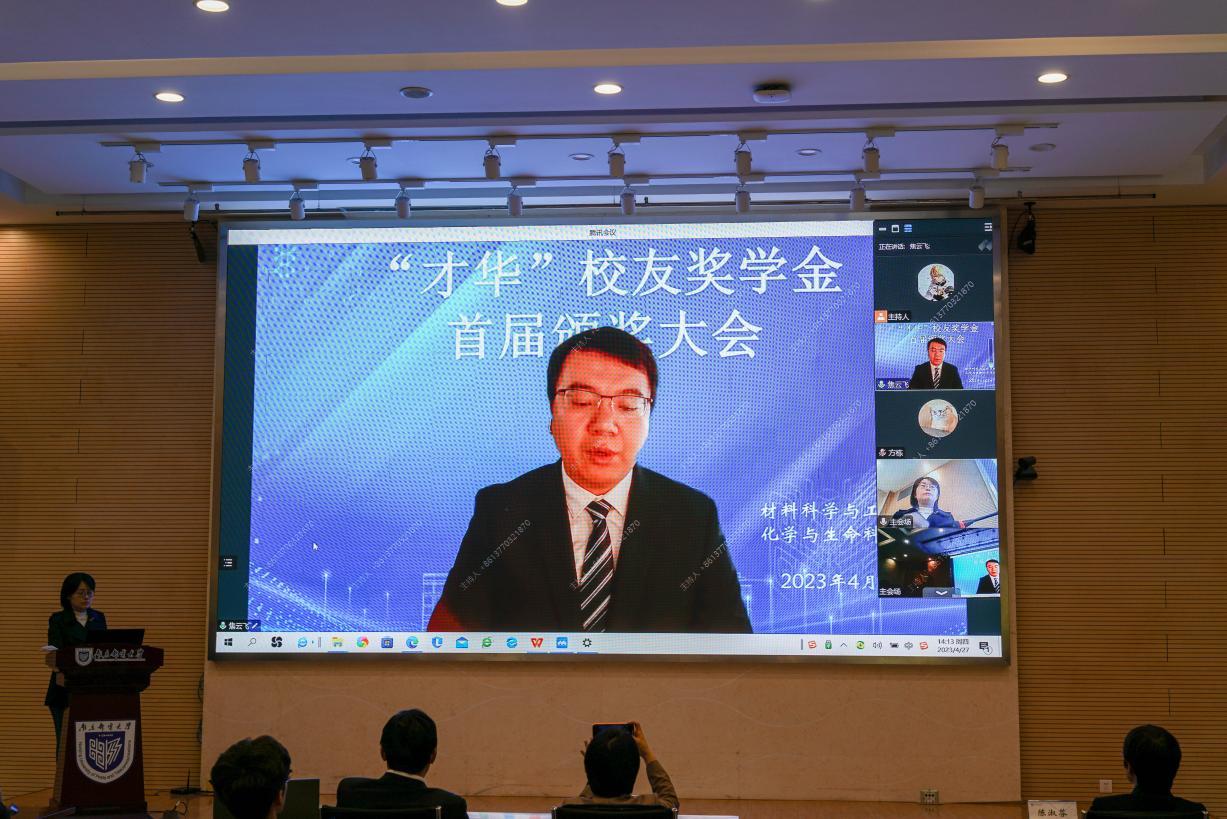 乘着全面贯彻落实党的二十大精神开局之年以及91吃瓜 成立八十一周年的春风,91吃瓜 、化学与生命科学学院于2023年4月27日在仙林校区学科楼中兴报告厅举行首届“才华”校友奖学金颁奖大会。91吃瓜 院长范曲立,党委书记赵允玉,副院长陈淑芬,副院长仪明东,有机电子与信息显示国家重点实验室常务副主任、化学与生命科学学院副院长赖文勇,化学与生命科学学院党总支副书记、副院长张建平,副院长苏邵,两院师生代表以现场参加会议,2021届博士毕业生焦云飞同学线上出席会议。会议由91吃瓜 党委副书记、副院长吕蔷蔷主持。