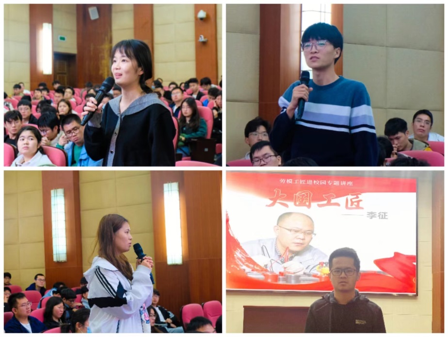 李征工程师以“匠心为魂 劳动筑梦”为主题做经历分享,结合自身成长经历、工作经历及学习体会,李征工程师用朴实的语言、生动的事例阐述了自己对“劳模精神”和“工匠精神”的理解,他坚守工作一线17载,不畏艰难困苦,全力以赴探索求新,保障冀北地区供电工作,出色地完成了冬奥会供电等各项高难度任务。他创办的“李征劳模创新工作室”培养各级专家人才二十余人,荣获全国示范性劳模和工匠人才创新工作室、国家技能大师工作室等多项荣誉。在科研创新的同时,李征工程师打造全国首家“公益劳模创新工作室”,关注社会热点与群众所盼,用科技为民生赋能,公益助力地区经济发展。李征工程师事迹受到新华社、人民网、中青网、光明网、工人日报等广泛报道。李征工程师的鲜活“思政课”,引发了广大师生的共鸣,现场数度响起热烈掌声。