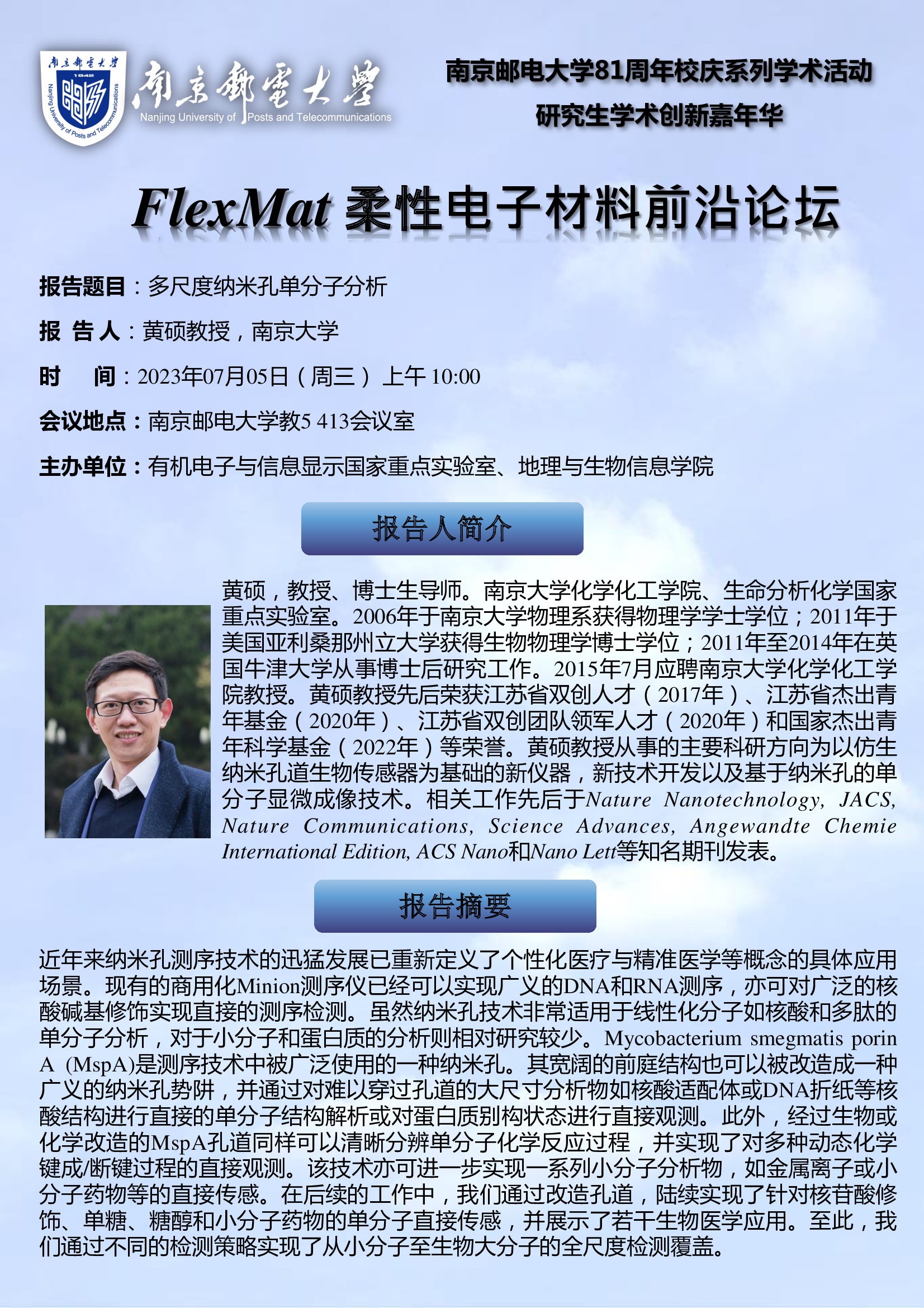 FlexMat柔性电子材料前沿论坛: 南京大学 黄硕教授