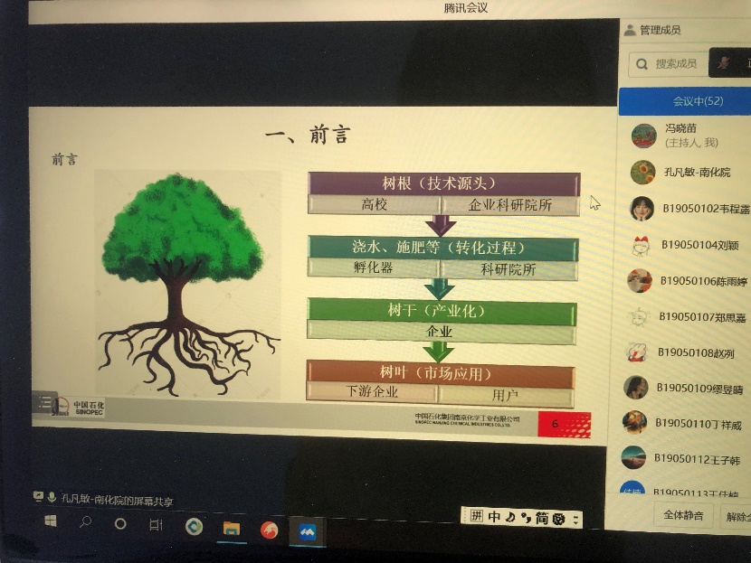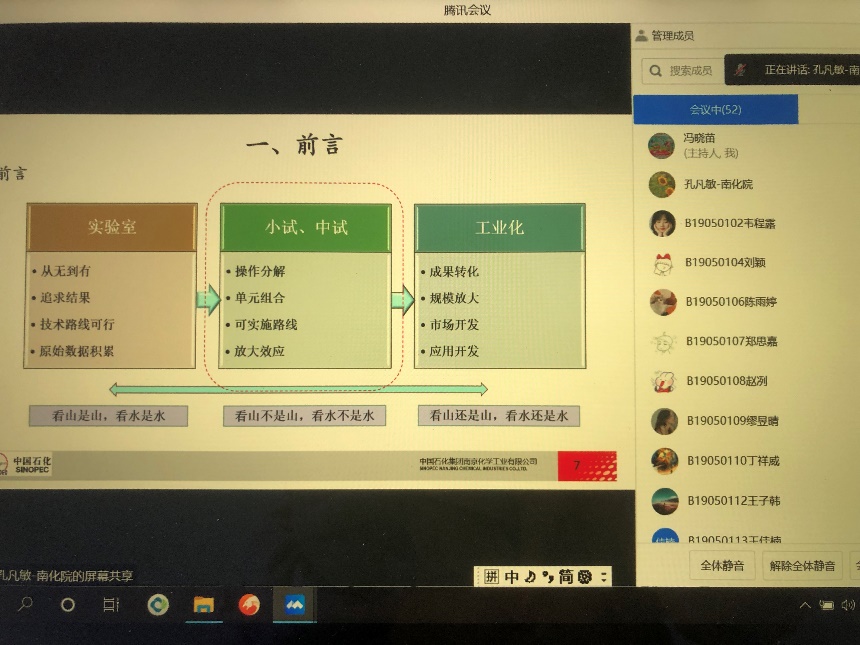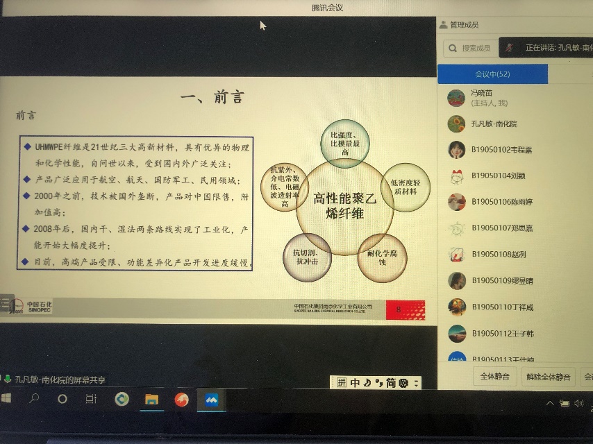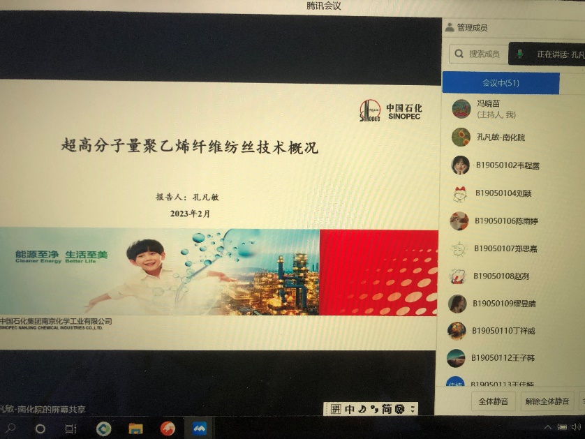 2023年2月15日上午,南化研究院气体净化所孔凡敏工程师为91吃瓜 高分子材料与工程专业大四学生进行远程培训。本次培训由91吃瓜 高分子材料与工程系系主任冯晓苗教授主持,系副主任周馨慧教授和B190501、B190502两个班全体同学参加了本次远程培训。