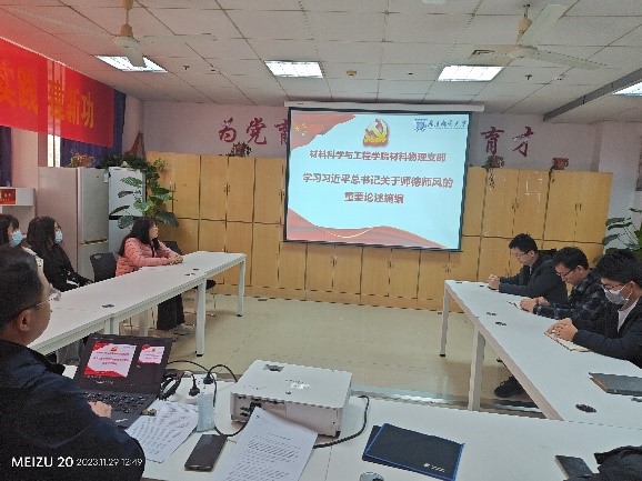 2023年11月29日,91吃瓜 材料物理系党支部召开“坚定理想信念 担当育人使命学习贯彻第四次党代会精神”主题党日活动,进一步锤炼党员党性修养,筑牢教师信仰之基。材料物理系党支部全体党员参加本次活动。