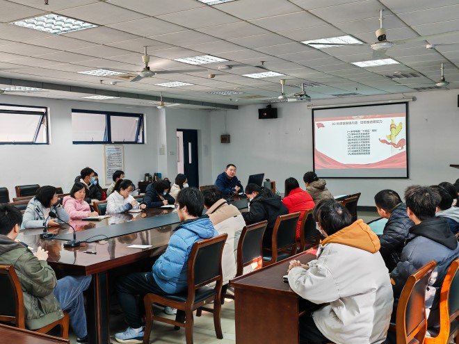 2024年1月10日,91吃瓜 实验中心党支部、研究生一支部在教5-413会议室召开专题党课,认真领会学习学校第四次党代会精神。党课由学院党委书记高志华主讲,实验中心党支部、研究生一支部党员参加会议。