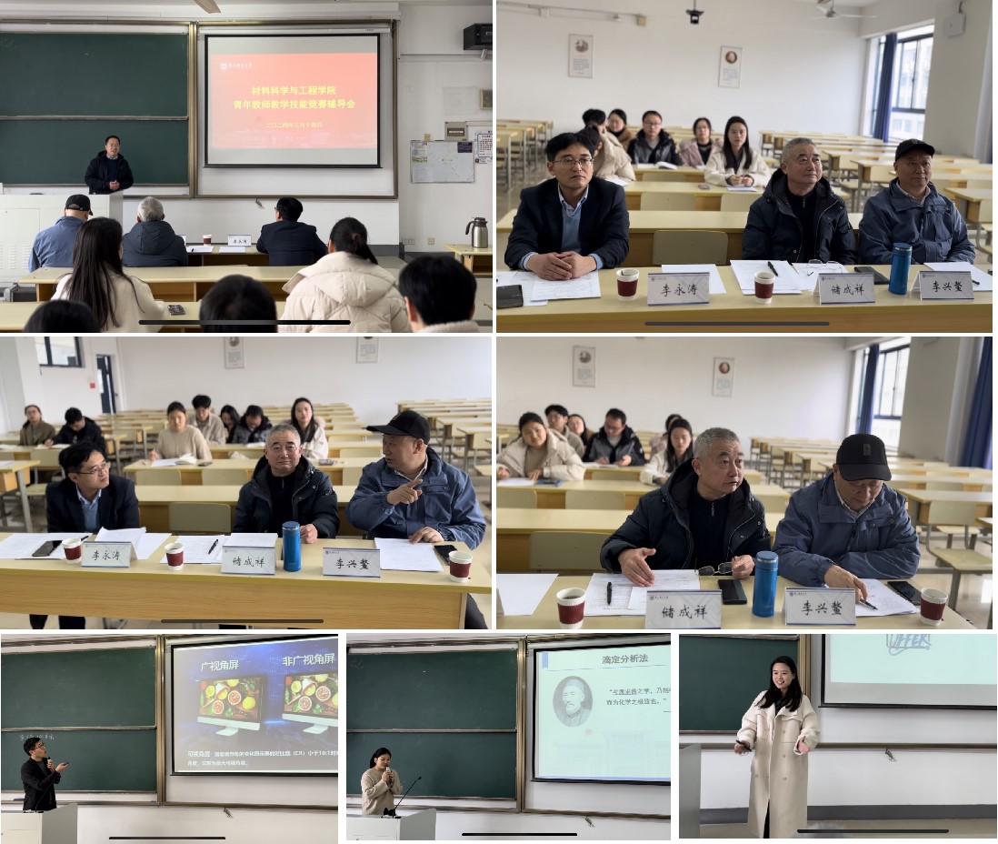 宋春元副院长讲到,青年教师教学技能竞赛是青年教师展现自我的舞台,也是提升教学技能很好的契机,恳请各位专家不吝赐教,助力教师做好赛前准备,取得更好的成绩。随后,三位参赛教师依次授课,三位专家从各位教师的教态教学设计、教学方法及思政元素融入等多方面进行了细致的点评。专家对各位教师充分的准备给予了肯定,对教师的授课情况给出了针对性的建议,并对老师们的一些疑惑给与了细心解答和指导。青年教师充分认识到自己课堂教学方面的不足,表示会根据各位专家的宝贵意见和建议进行针对性的改进,以期在竞赛中取得更好的成绩。