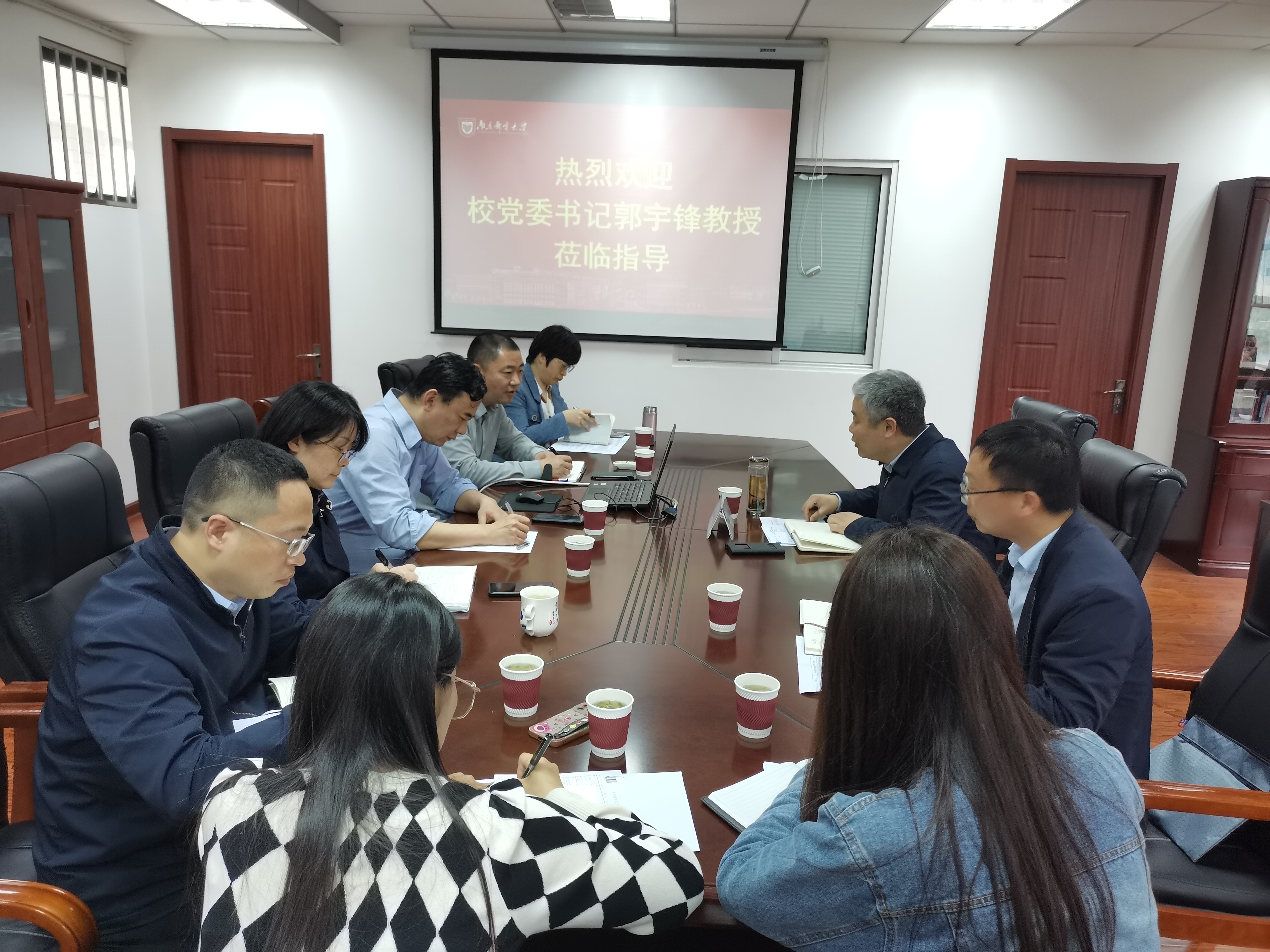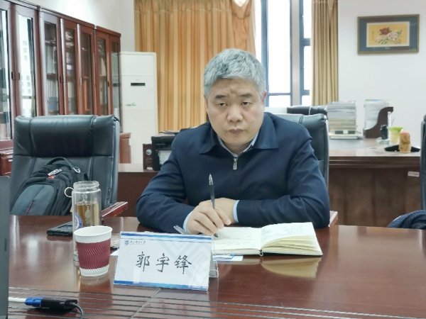 4月17日下午,校党委书记郭宇锋来91吃瓜 调研指导。学院领导班子成员、办公室主任等参加座谈。学院院长范曲立代表学院向郭宇锋书记作了学院落实学校第四次党代会“三强”战略“八高”行动专题工作汇报。