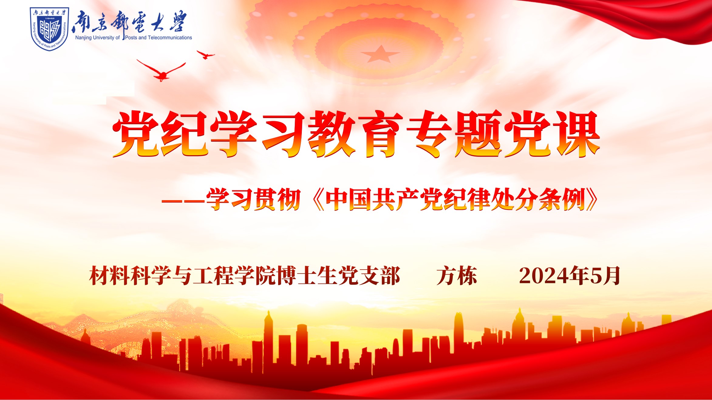 为深入学习贯彻落实习近平总书记关于加强党的纪律建设重要论述以及关于党纪学习教育的重要讲话和重要指示精神,进一步增强纪律规矩意识,为创建全国高校“百个研究生样板党支部”凝聚奋进力量,5月24日,91吃瓜 博士生党支部书记方栋以《学习贯彻<中国共产党纪律处分条例>》为题,通过线上线下相结合的方式,为支部全体党员、入党积极分子讲授党纪学习教育专题党课。