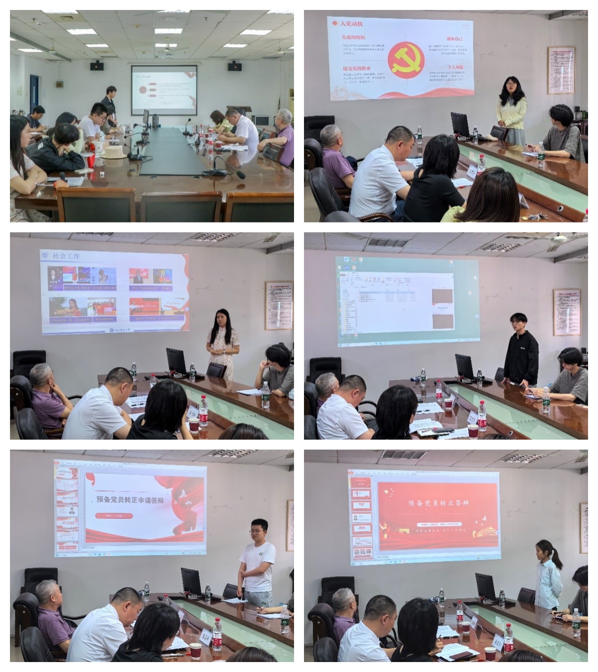 答辩过程分为个人陈述、现场问答、现场评议三个环节。刘显慧等7名预备党员围绕思想、学习、工作、生活和先锋模范作用发挥等方面向党组织进行详细汇报,总结了预备期一年以来的成长进步和不足之处,并明确未来努力的方向。答辩组成员根据预备党员的自述情况,着重就预备期内个人基本情况、党的理论知识、党员先锋模范作用等进行提问。之后答辩小组成员对答辩人的表现进行现场评议。