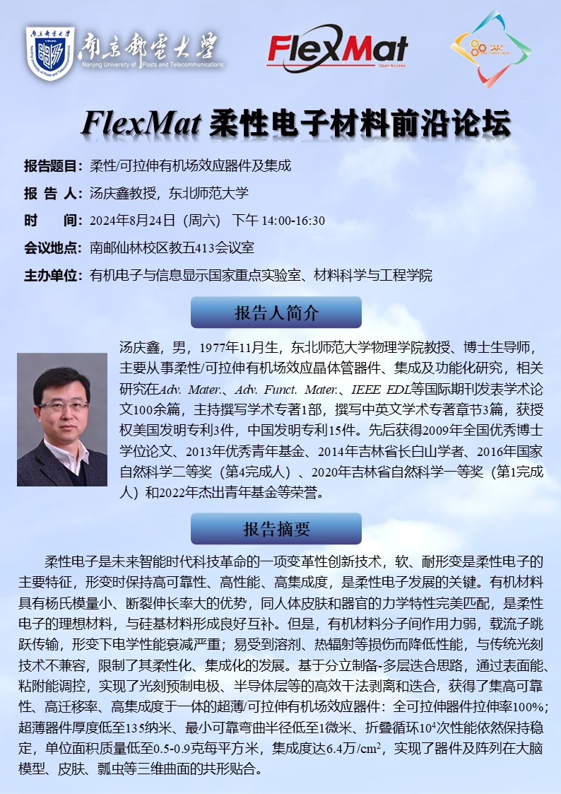 FlexMat柔性电子材料前沿论坛:东北师范大学 汤庆鑫教授
