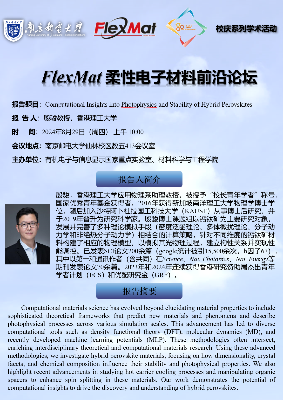 FlexMat柔性电子材料前沿论坛:香港理工大学 殷骏教授