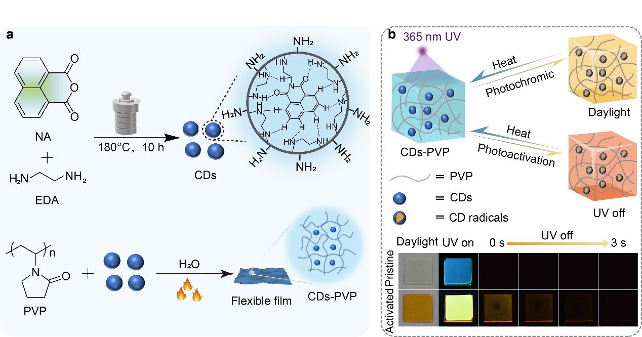 这些发现揭示了设计具有余辉的多刺激响应光致变色CDs的基本原理,从而扩展了在先进信息防伪和人工智能中的应用。