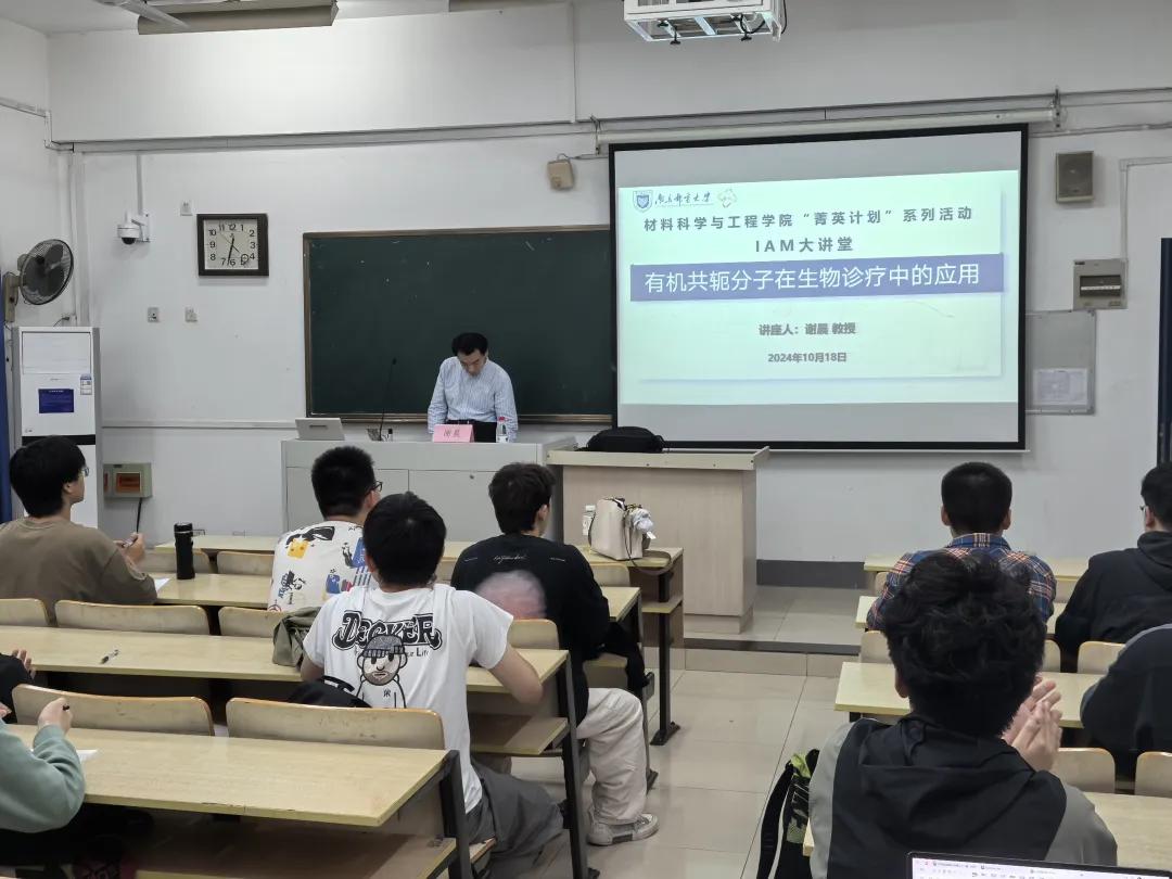 2024年10月18日晚上,教3-103,学院邀请谢晨教授为“菁英计划”学员开展题为《有机共轭分子在生物诊疗中的应用》的讲座。讲座由22级本科生辅导员侍茜茜老师主持,全体2023级和2024级“菁英计划”学员参加学习。