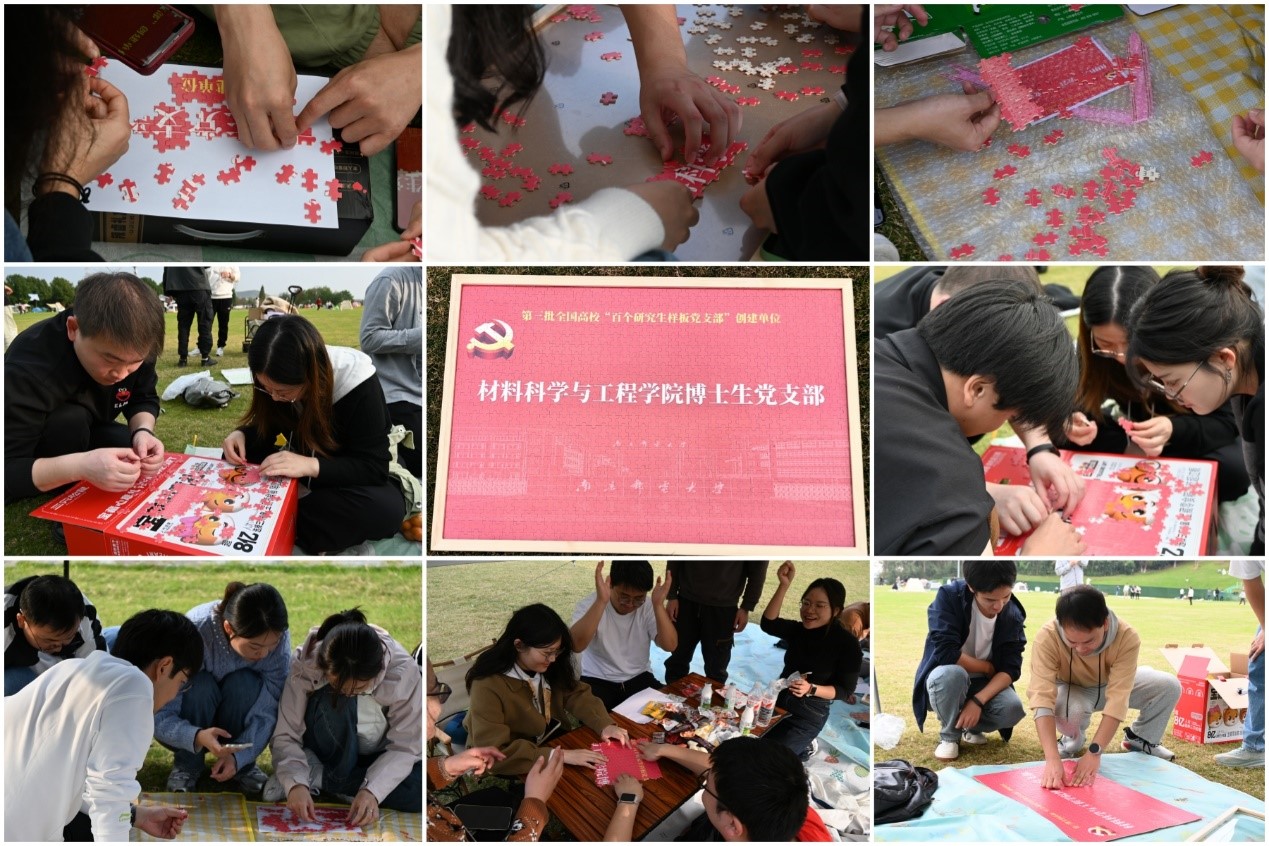 支部以“党徽领航拼未来、红心聚力筑梦行”为核心理念,将党徽与南邮元素、支部元素相融合,设计出一幅党徽领航支部的主题拼图。此活动旨在搭建交流平台,激发团队协作潜能,携手绘制支部发展蓝图。活动开始后,党员及入党积极分子被分为六个小组,每一支队伍都承担着完成拼图特定区域的任务。组内成员围坐一圈,时而低头沉思,时而热烈讨论,彼此间积极分享各自见解与思路,共同寻找每一块拼图的最佳位置。随着时间的推移,各小组逐渐找到了拼接的窍门,拼图的轮廓也愈发清晰。在大家齐心协力的探索下,最后一块拼图被准确地嵌入空缺处,绿茵草地上爆发出热烈而激动的欢呼声。在经历了数次尝试与挑战后,六个小组最终将拼图合为完整画面。党徽如同灯塔,照亮着支部前行的道路,引领着每一位党员向着共同的目标奋勇前进。