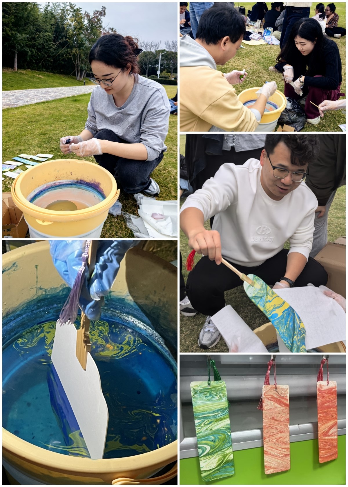 拼图活动结束后,大家满怀热情地投入到更多活动中,从漆扇、书签的精美制作,到飞盘、羽毛球的活力比拼。在欢声笑语中,党员和入党积极分子们不仅大胆探索了传统文化与现代审美的融合之道,更是在轻松愉悦的氛围中缓解了学习科研的重压,强健了体魄,在风景如画的羊山湖畔留下了自己青春洋溢的风采与美好回忆。