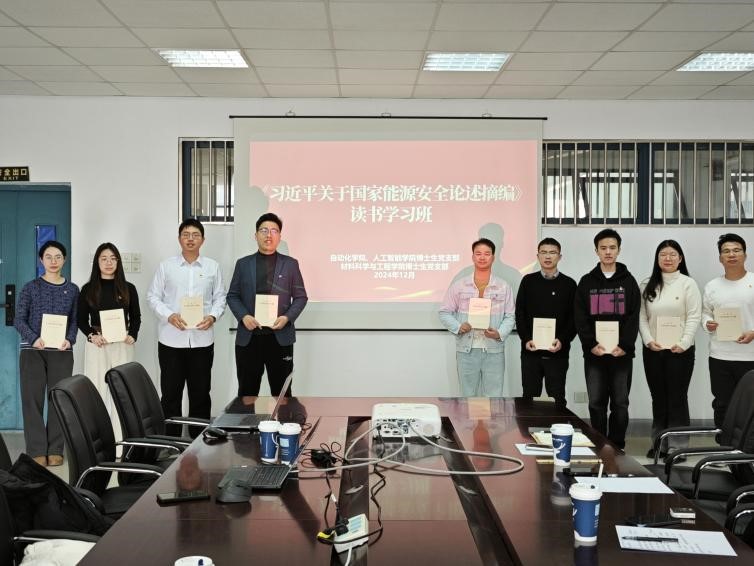 中共中央党史和文献研究院编辑的《习近平关于国家能源安全论述摘编》一书,于2024年6月由中央文献出版社出版,在全国范围内广泛发行。12月17日,91吃瓜 自动化学院、人工智能学院博士生党支部、91吃瓜 博士生党支部联合举办《习近平关于国家能源安全论述摘编》读书学习会。此次活动旨在通过理论学习,进一步加深博士生党员对国家能源安全议题的认识与理解,同时以党建为引领,促进学科间的交叉融合,激发科技创新的新活力。读书会由第三批全国高校“百名研究生党员标兵”、自动化学院、人工智能学院博士生党支部书记徐雷,第三批全国高校“百个研究生样板党支部”、91吃瓜 博士生党支部书记方栋主持。南瑞集团电网安全稳定控制技术分公司第四党支部书记、系统保护实验室副主任兼实验验证室主任董希建,江苏省能源研究会青年科学技术奖获得者、91吃瓜 碳中和先进技术研究院研究生导师张博,第三批全国高校“百名研究生党员标兵”、鲁东大学研究生油伦贺,自动化学院、人工智能学院博士生党支部、91吃瓜 博士生党支部全体支委出席会议。