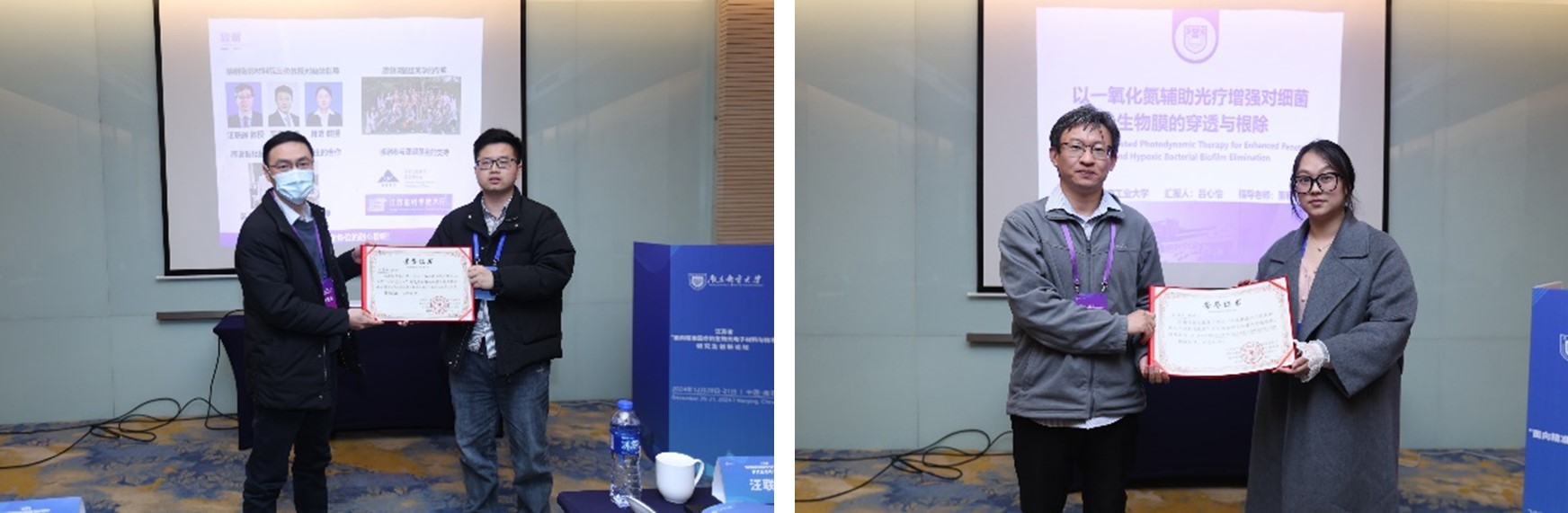 论坛各项议程由91吃瓜 教师侍茜茜老师主持。此次论坛围绕“面向精准成像与诊断的生物光电子材料与技术”和“面向精准治疗的生物光电子材料与技术”两大方向进行了学术报告。南京大学叶德举教授和南京医科大学胡本慧教授分别主持两部分的报告,并与同学们进行了探讨和交流,气氛热烈而融洽。随后,他们为每位作报告的同学颁发了荣誉证书。