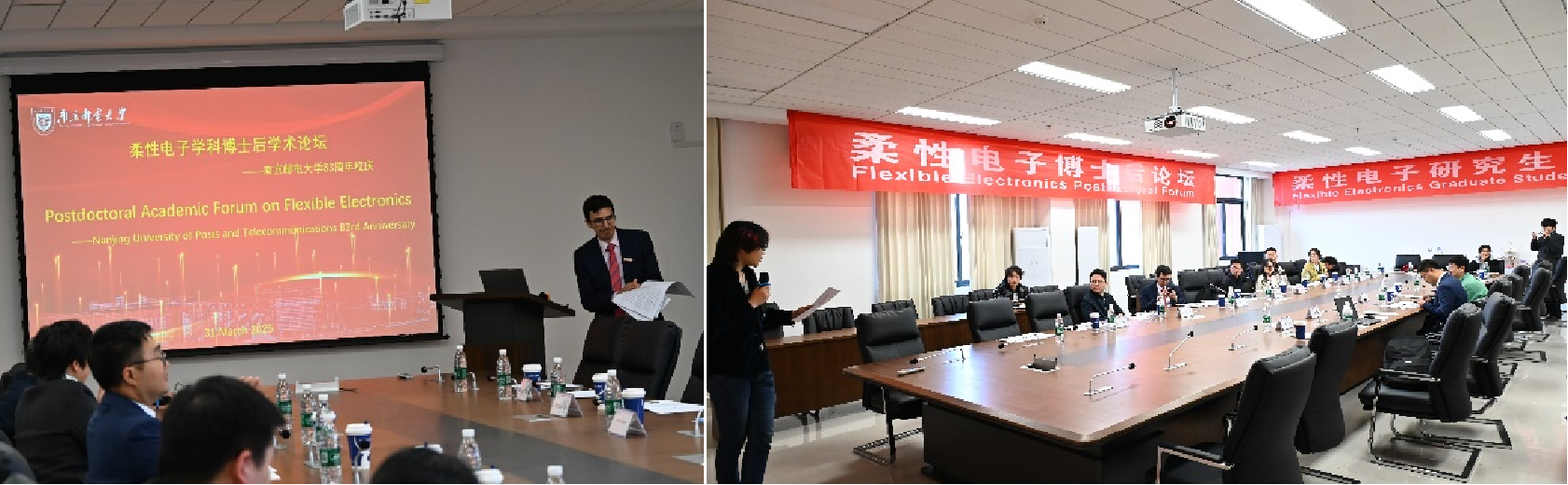 当日下午,研究生院、人事处、91吃瓜 、化学与生命科学学院联合举办了91吃瓜 83周年校庆学术月活动之柔性电子博士后/研究生学术论坛,人事处田峰副处长为论坛致辞,剑桥大学Monserrat教授和陈思宇博士分别主持了柔性电子博士后学术论坛和柔性电子研究生学术论坛。论坛汇聚了来自剑桥大学及南邮多个学院的博士后与研究生代表,围绕电子结构、光电材料、机器学习等热点问题进行深入交流。