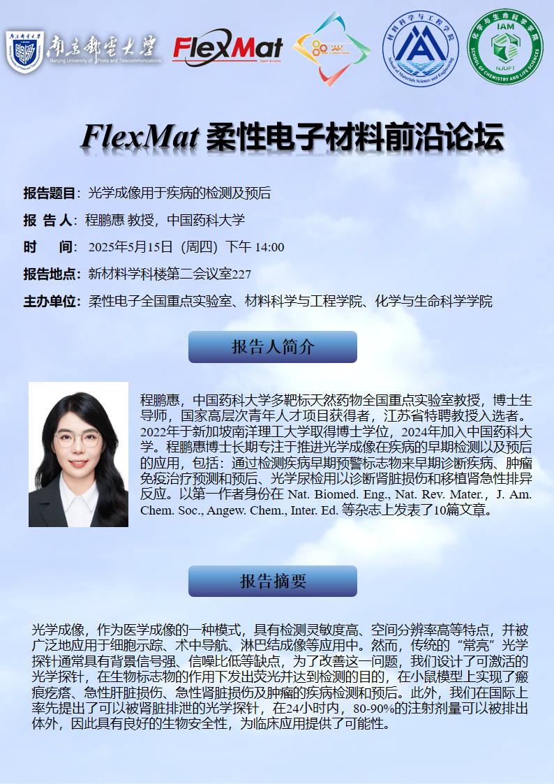 FlexMat柔性电子材料前沿论坛:中国药科大学 程鹏惠 教授