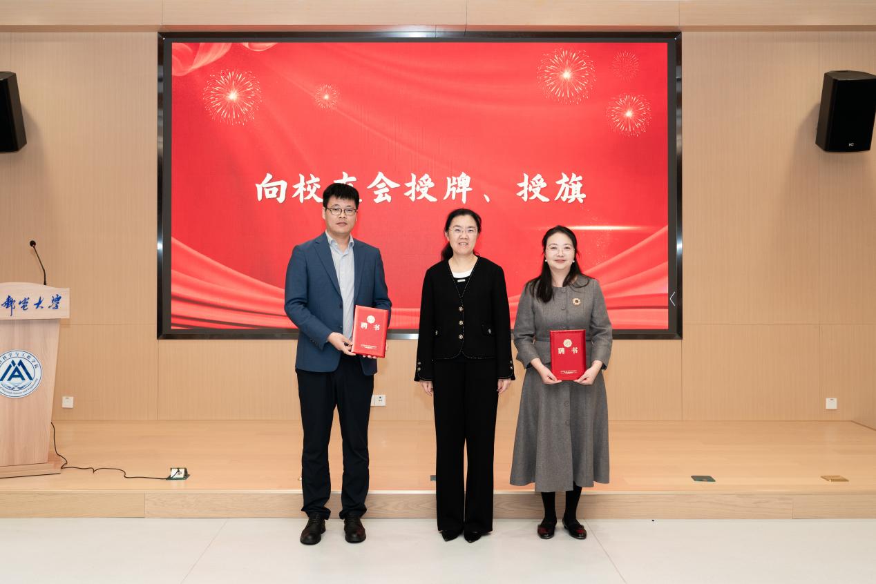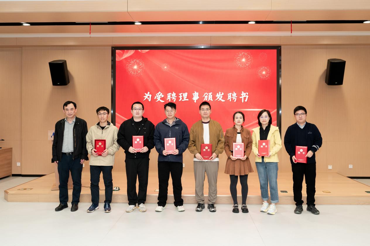 随后,吕蔷蔷做学院第一届校友会筹备工作报告。大会审议通过了学院第一届校友会组织机构人员建议名单。在热烈的掌声中,校院领导共同为校友会授牌、授旗,并向当选的理事们颁发了聘书。