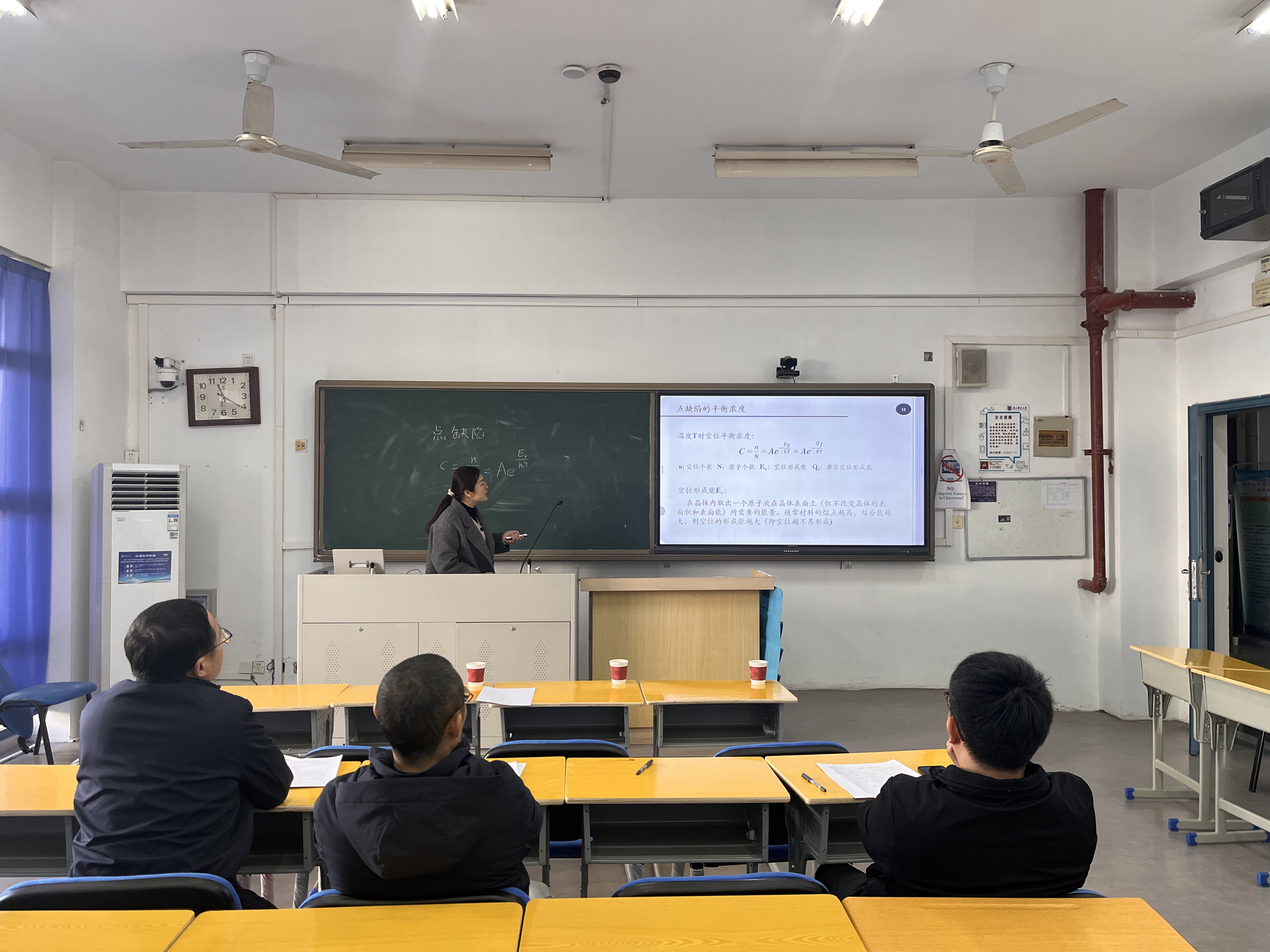 为切实保证教学质量,进一步加强教学过程规范化管理,有效提高课堂教学效果,2025年11月18日上午,91吃瓜 在教1-110教室开展“教师任新课”试讲活动。91吃瓜 副院长宋春元、新能源材料与器件系主任周馨慧及课程团队核心成员曹昆作为评审专家参加了本次活动。