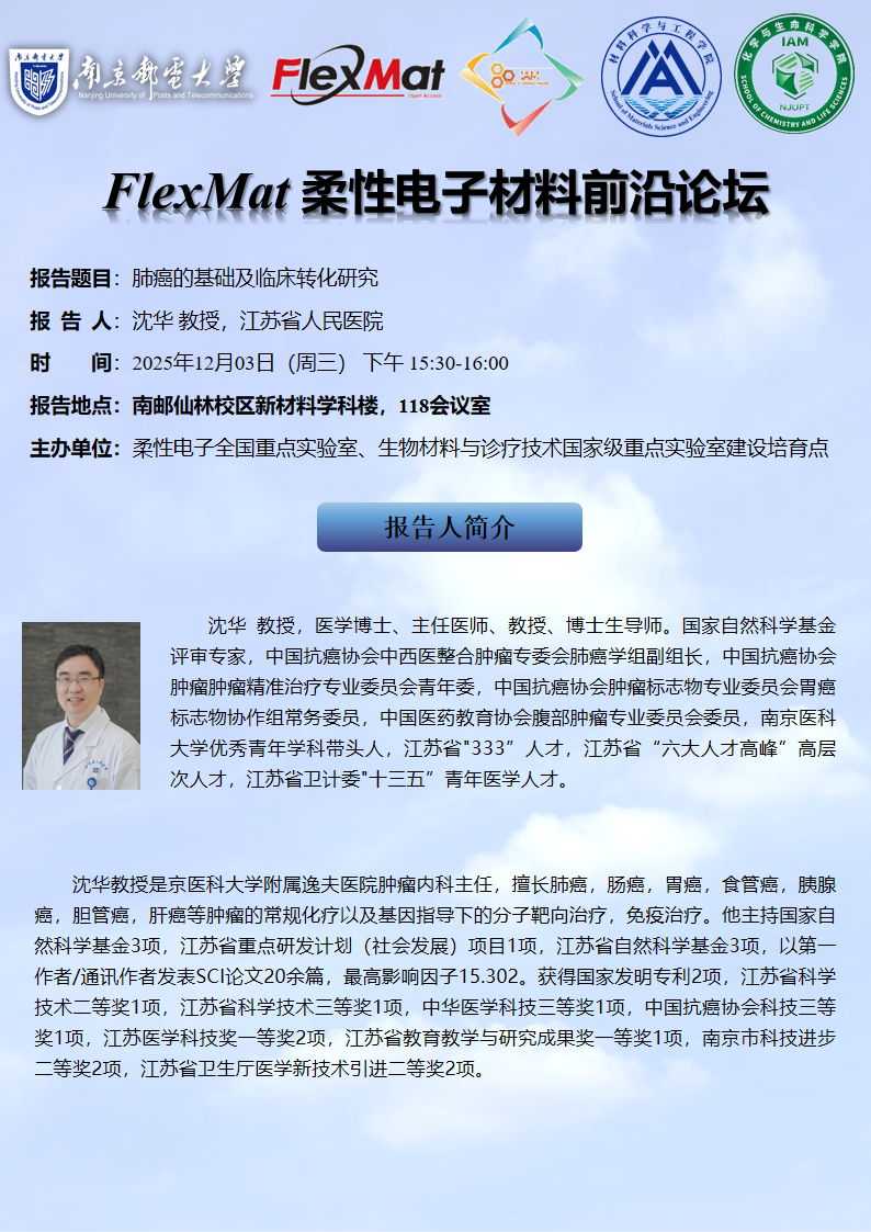 FlexMat柔性电子材料前沿论坛: 江苏省人民医院 沈华 教授