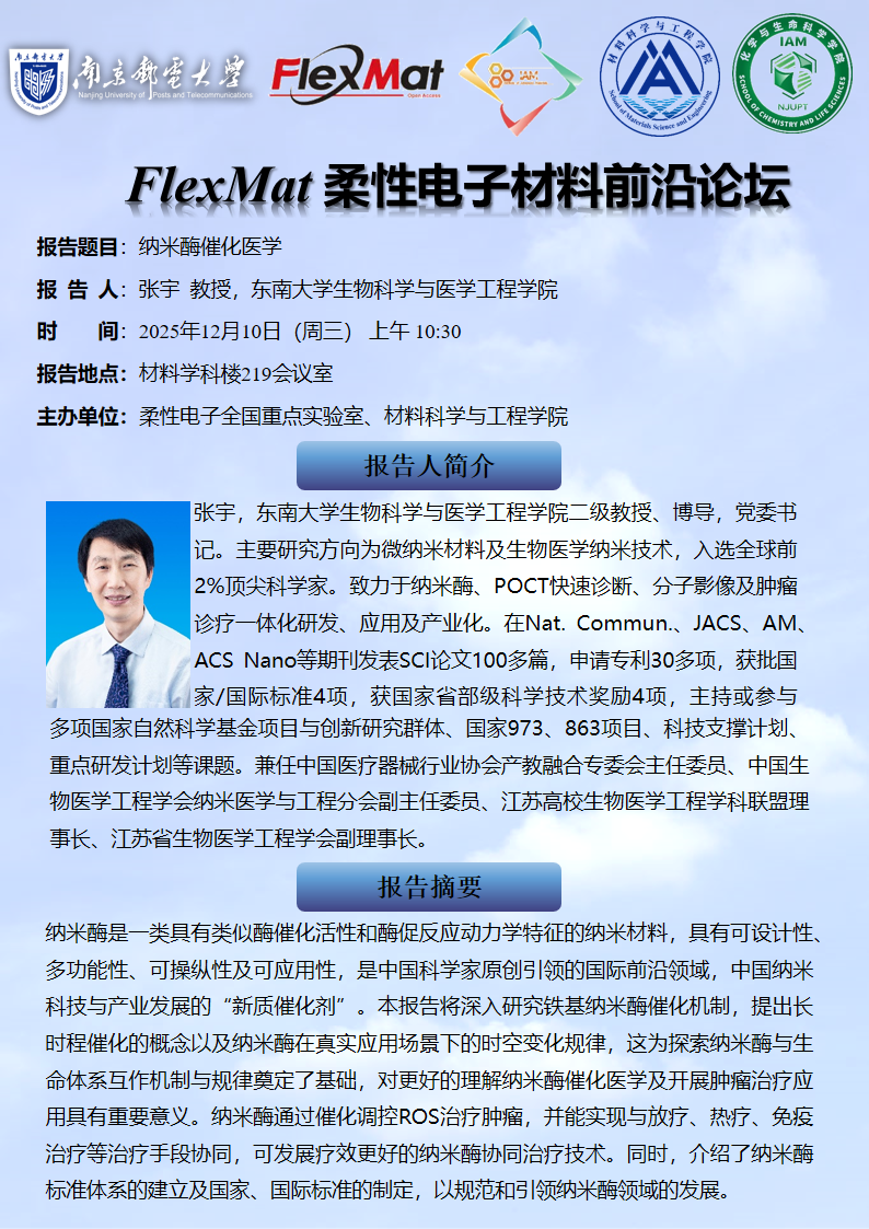 FlexMat柔性电子材料前沿论坛: 东南大学 张宇教授