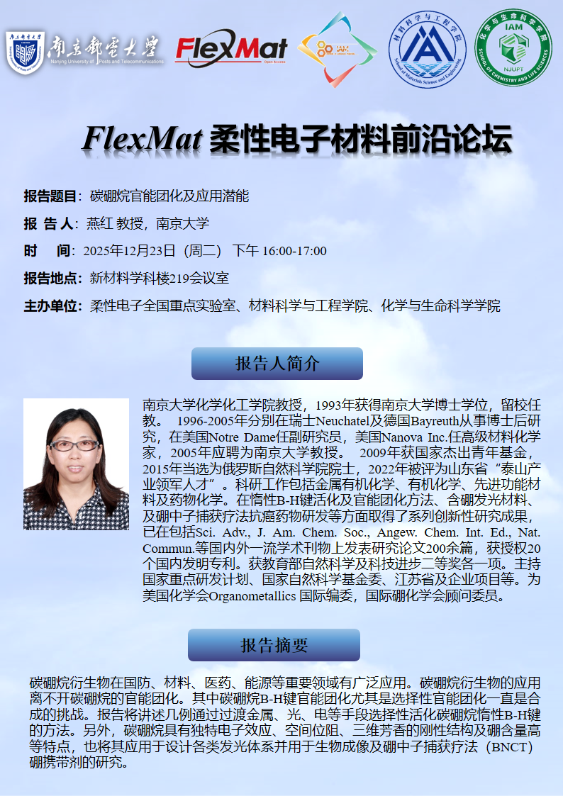 FlexMat柔性电子材料前沿论坛:南京大学 燕红教授