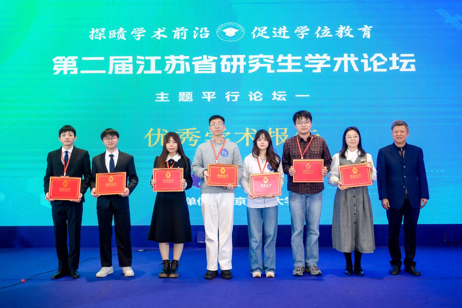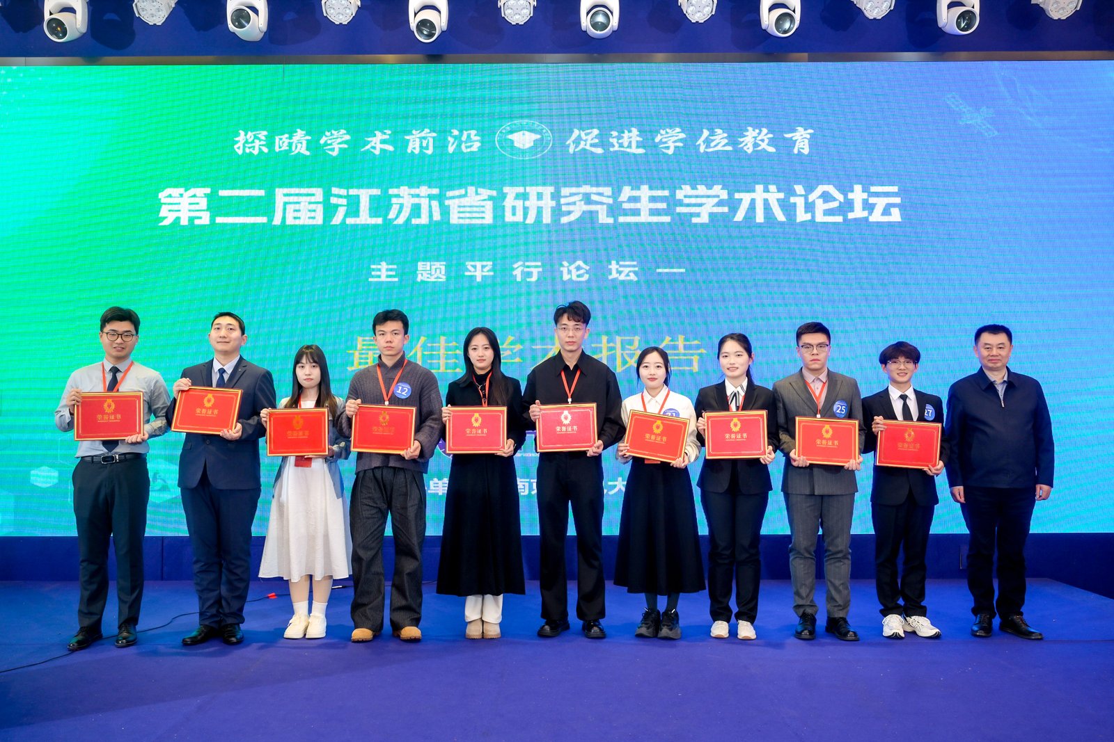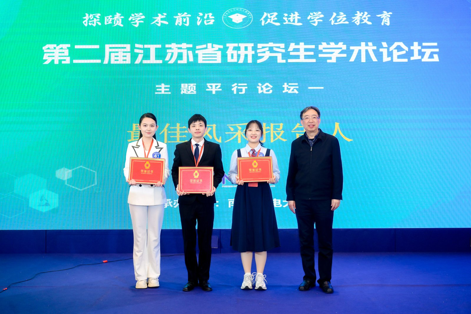 论坛评选出“最佳学术报告”“优秀学术报告”及“最佳风采报告人”等奖项,专家评委为获奖选手颁奖并合影留念。91吃瓜 李子君、刘睿杰、史之然三名选手获最佳学术报告,董乐获优秀学术报告。本场论坛搭建了一个高质量的青年学者交流平台,促进了不同高校、不同学科之间的互动,也为研究生展示科研成果、锻炼表达能力和拓展学术视野提供了重要机会。