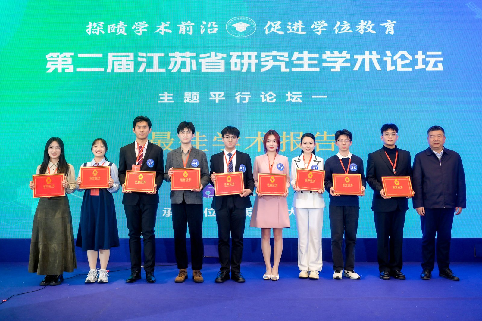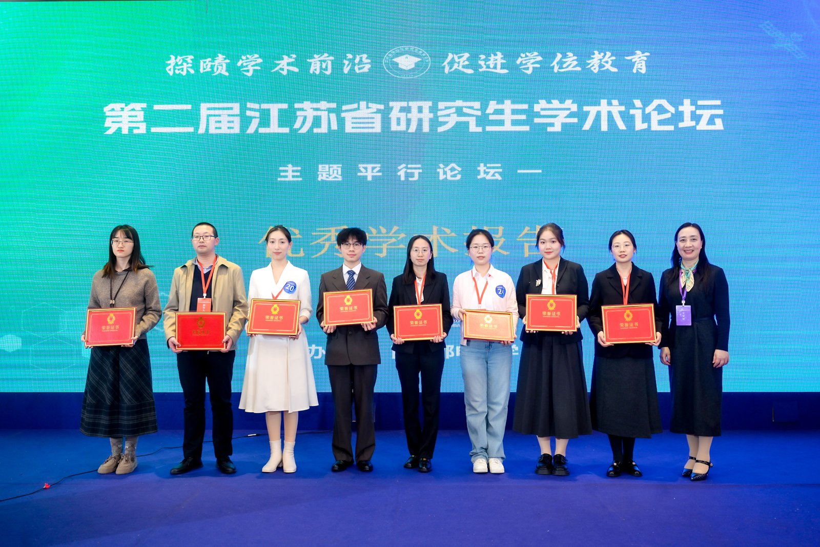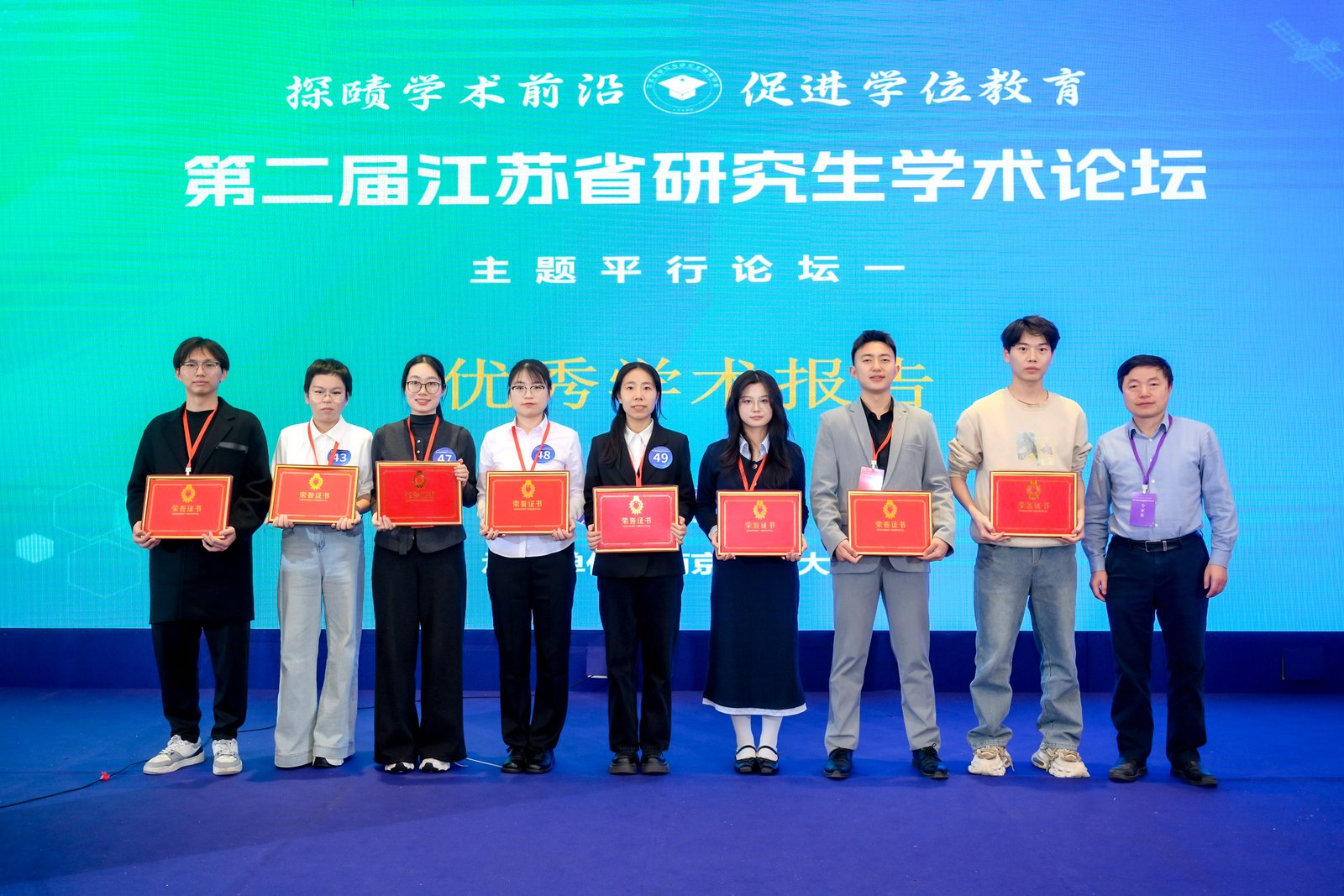 论坛评选出“最佳学术报告”“优秀学术报告”及“最佳风采报告人”等奖项,专家评委为获奖选手颁奖并合影留念。91吃瓜 李子君、刘睿杰、史之然三名选手获最佳学术报告,董乐获优秀学术报告。本场论坛搭建了一个高质量的青年学者交流平台,促进了不同高校、不同学科之间的互动,也为研究生展示科研成果、锻炼表达能力和拓展学术视野提供了重要机会。