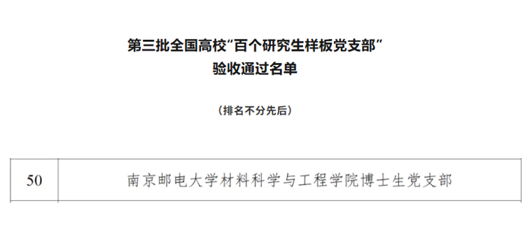 自2024年4月入选第三批全国高校“百个研究生样板党支部”创建名单(教思政厅函〔2024〕8号)以来,在学校党委的统筹部署以及党委组织部、宣传部、研工部的引领指导下,在学院党委的直接指导和悉心关怀下,博士生党支部始终以习近平新时代中国特色社会主义思想为根本遵循,紧扣时代脉搏、对标创建要求,以南邮红色文化领航,依托柔性电子全国重点实验室、研究型学院优势平台,积极探索党建与科研、育人深度融合的创新实践路径,建立“二三五七”(两个抓手、三个传承、五个联系、七个机制)支部工作法,形成“党建引领科研,科研反哺育人,育人升华党建”良性循环,推动支部建设实现高质量突破式发展,充分彰显了样板党支部的示范引领作用,较好形成了“培育一个、带动一批、影响一片”的辐射效应。