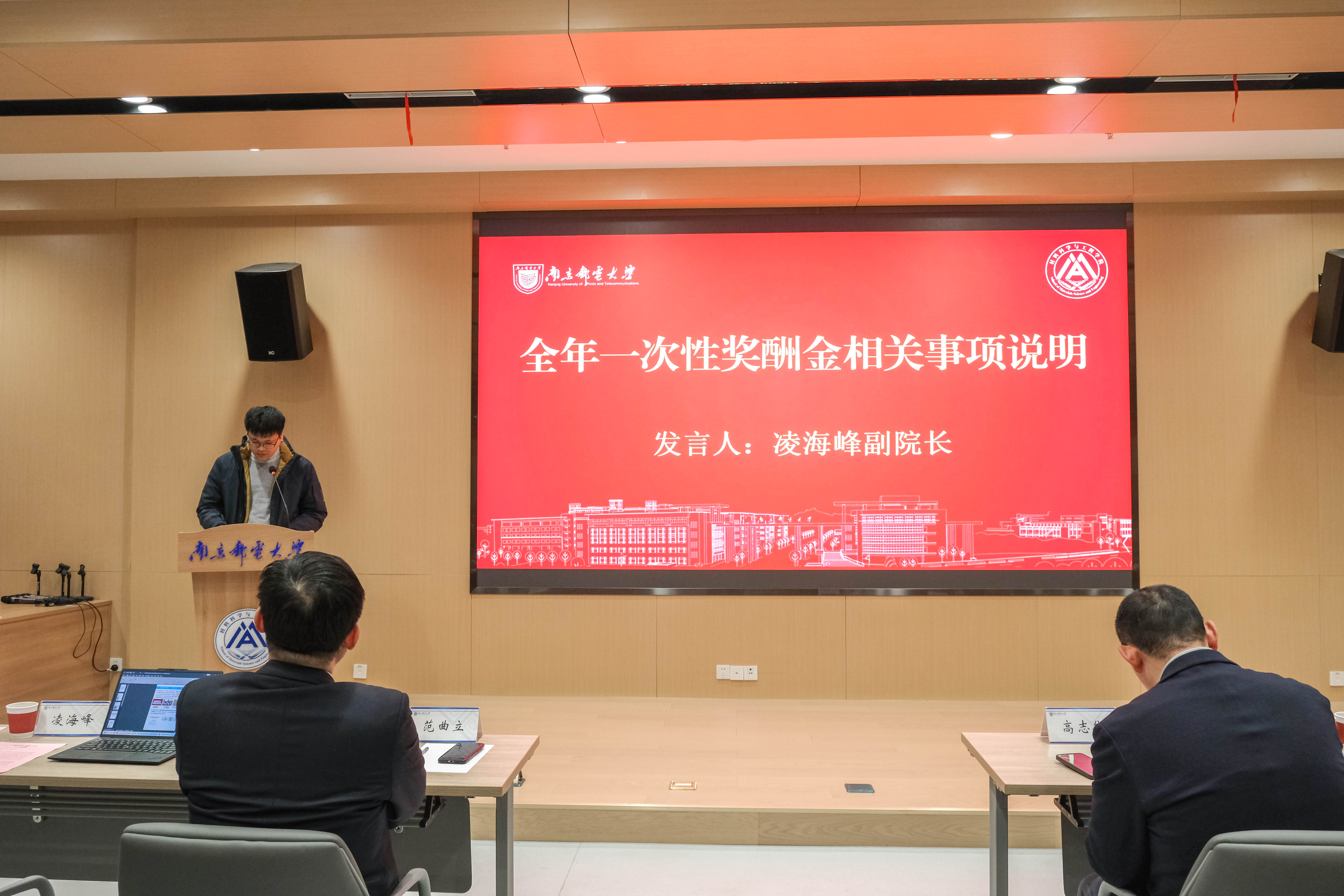 会议还听取了凌海峰副院长关于学院高层次人才科研管理费收取比例调整方案的报告,就全年一次性奖酬金相关事项进行了说明。